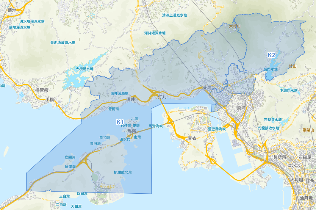 荃灣共兩個地方選區,荃灣西北(K1)、荃灣東南(K2)。
