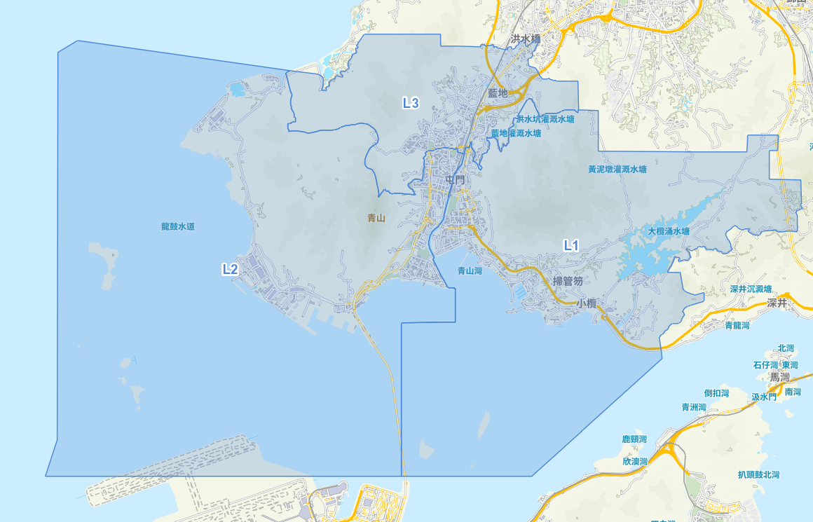 屯門共三個地方選區,屯門東(L1),屯門西(L2),屯門北(L3)。