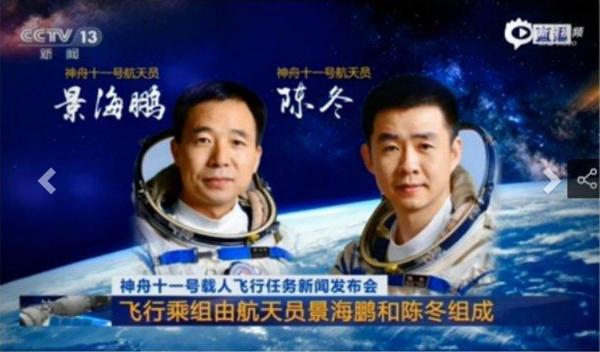 【橙訊】「神舟十一號載人飛船將於10月17日7時30分發射!」載人航太工程辦公室副主任武平,16日上午宣佈,此次太空任務將由太空人景海鵬和陳冬組成,景海鵬擔任指令長。兩人將在太空停留30天,是中國航天任務最長的一次,並將同時進行多項科研任務,當中包括“水膜反應”、“太空養蠶”和“雙擺實驗”等三項由香港中學生所設計的科研實驗項目。