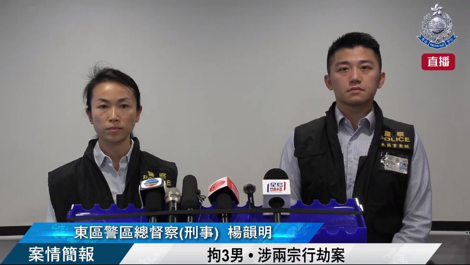 東區警區總督察楊韻明批評行劫團夥的行為卑劣,專門針對獨行人士,以強凌弱,趁事主一個人時,上前攔截、不由分說毆打事主,至失去反抗能力後再劫去財物。警方重申,行劫罪是非常嚴重罪行,一經定罪,最高可判處終生監禁。警方對於牽涉嚴重暴力的罪行,一直採取零容忍態度,有決心及能力偵破這類嚴重罪案,又指今年在港島區所有發生的行劫案,全部都已偵破。
