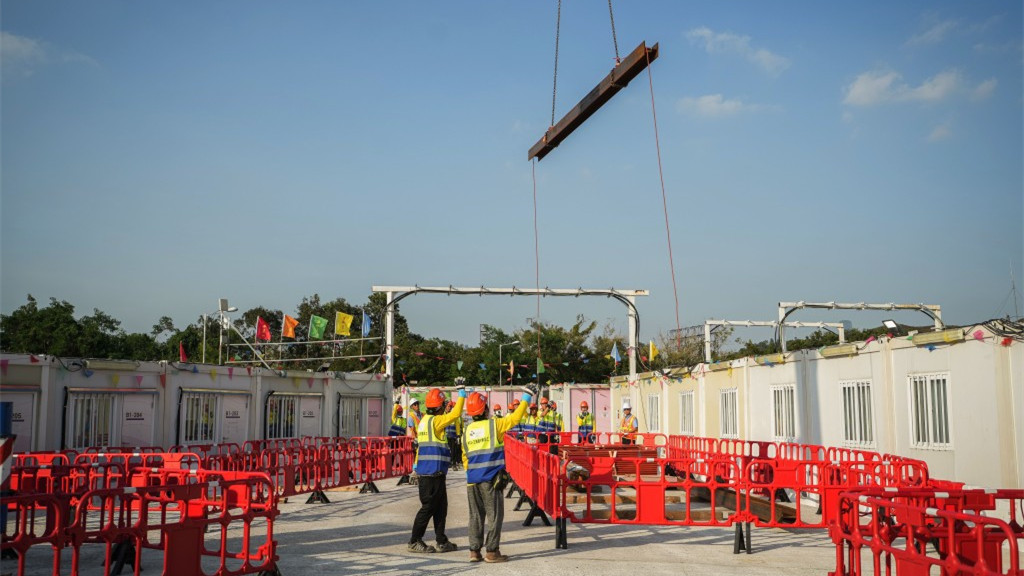 【橙訊】疫情過後,社區隔離設施陸續改為不同用途,其中佔地面積約3.8萬平方米的新田方艙,由發展局改造成建造業議會課程培訓和工藝測試用地。據悉,此地將為建造業工人提供銀卡「A12」安全訓練課程用地,以及髹漆及裝飾工中級工藝測試用地,讓工人學習安全知識、實地訓練「組裝合成」吊運技術、進行筆試及實務測試。