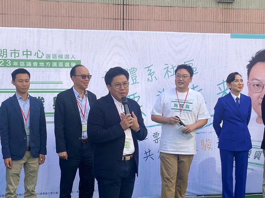 元朗巿中心選區候選人施駿興今日假元朗朗藝徑舉行選舉誓師大會。圖:橙新聞