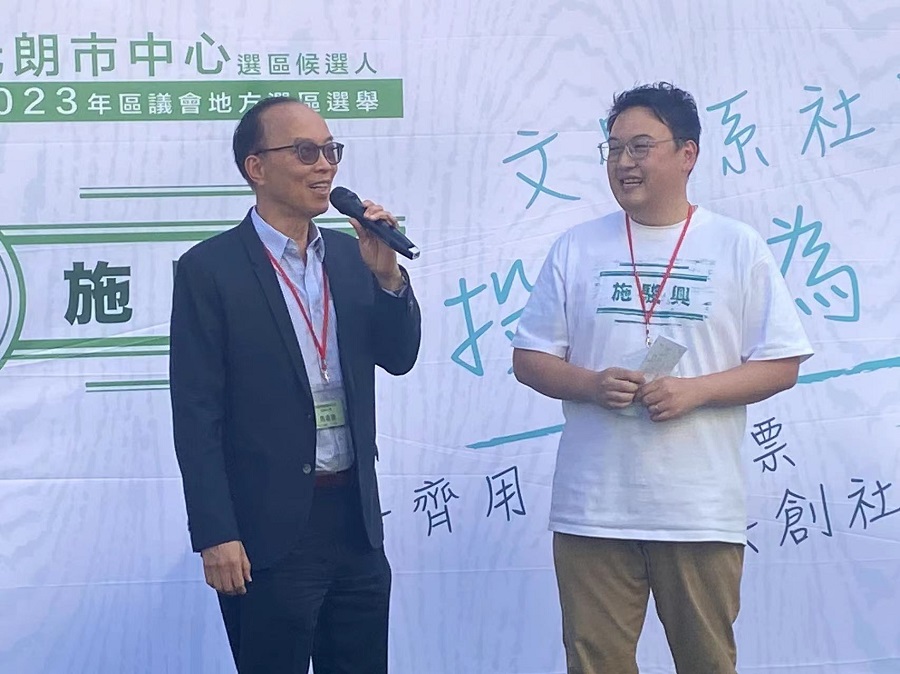 馬逢國認為施駿興有足夠能力,因此全力支持施駿興參加區議會選舉。圖:橙新聞