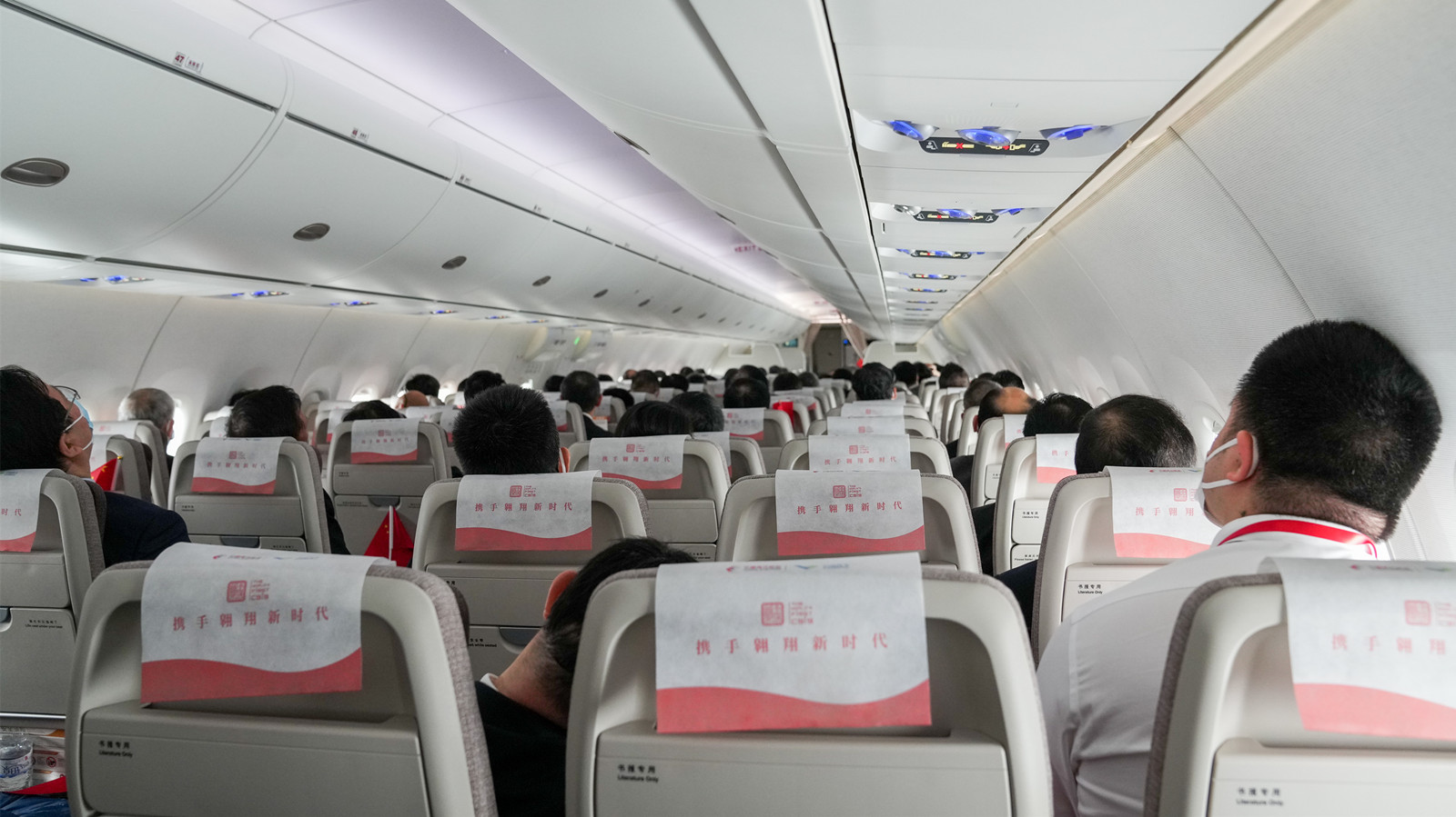 C919在機艙寬度比空客A320和波音737寬鬆,乘客乘坐更舒適。