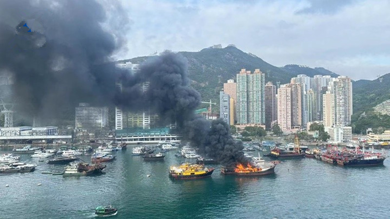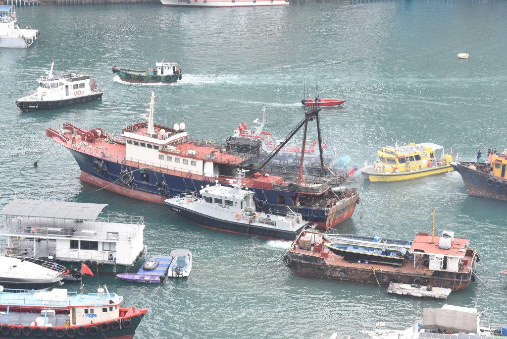 現場是香港仔近魚市場道對開海面,下午3時47分,一艘木漁船和停靠在旁邊的鐵船起火,其中木漁船幾乎全艘陷入火海。