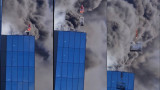 千鈞一髮‧有片|英大樓火警男子被困天台 工人操作天秤垂下吊籠救人