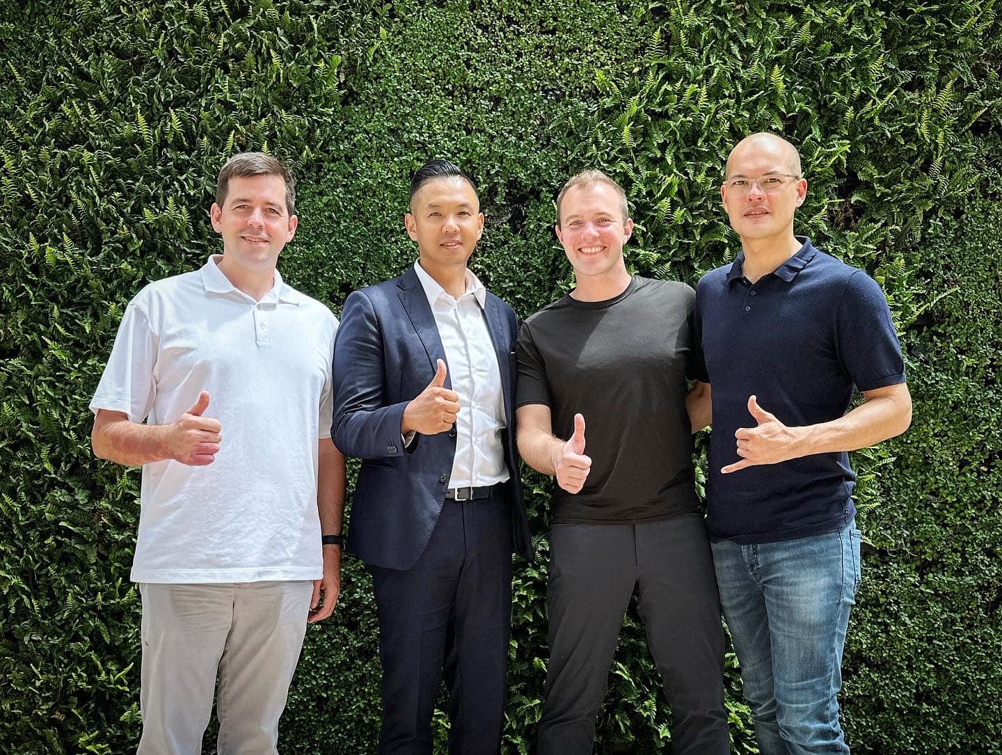 王力宏、徐若瑄、黑人及范范的一張合照中,4位主角無一不黑氣纏身,禍事一宗接一宗。(圖:徐若瑄 Vivian Hsu@FB)