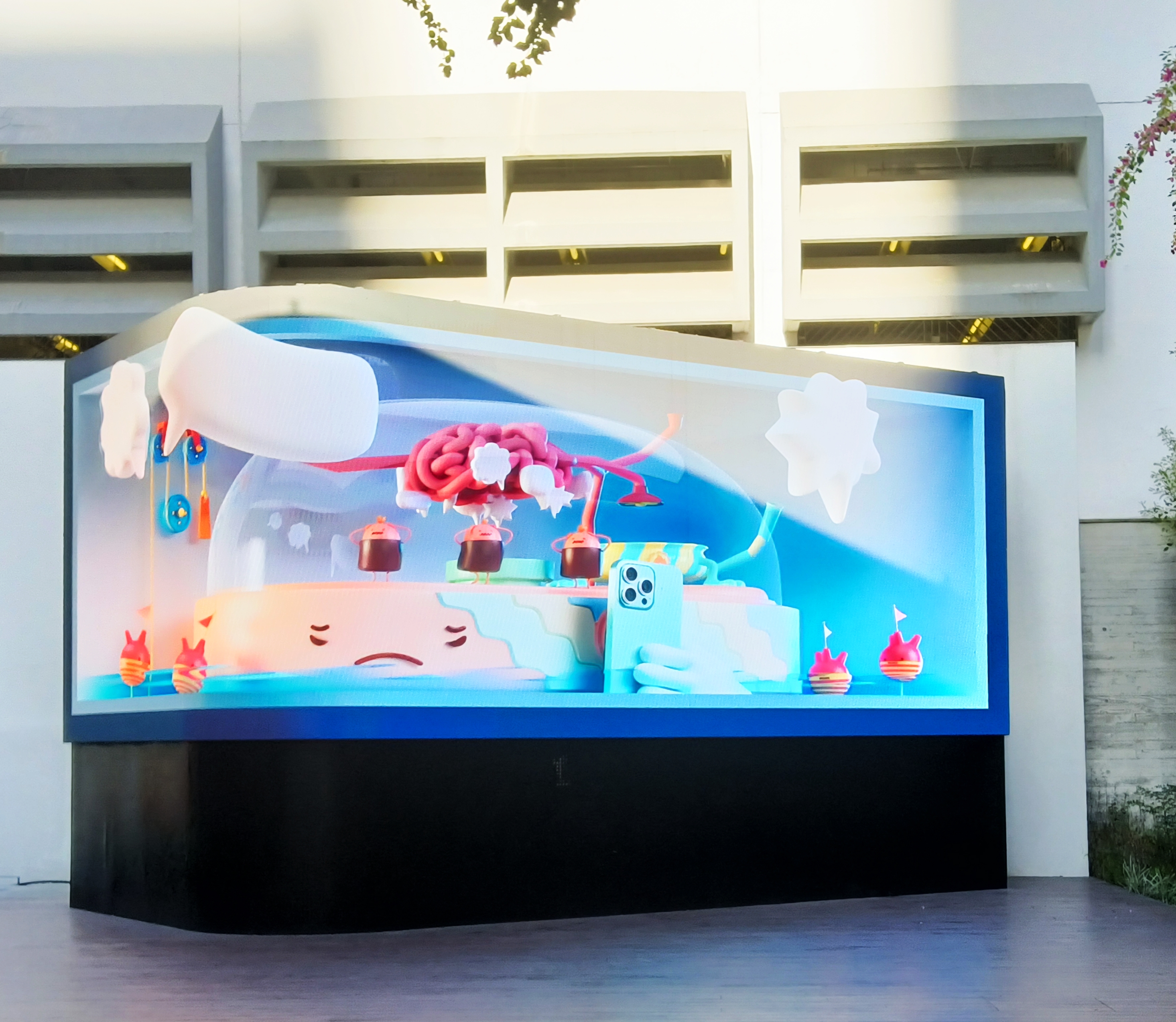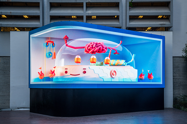 在熒幕上,觀眾可以看到几只奇異小生物在膠囊般的空間中活動,隨著頭腦中的「日出」、「日落」工作休息。鬧鐘響起時,它們會煩悶,社交媒體的消息過多時,它們會躁動……這些小生物生活在我們的心態循環系統中,它們的活動意味著我們的心態起伏。