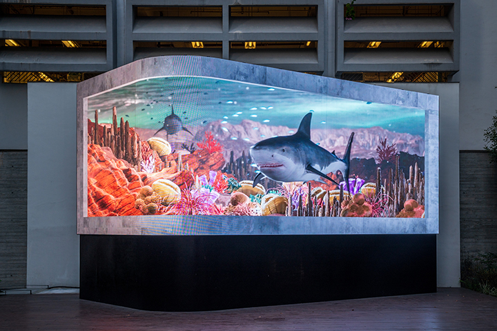 《智域之外》格外關注香港與海洋的關係,遠古時期,香港被海水淹沒,海洋生物在這片土地上遨遊,後來,香港居民發展漁業和航運,又成為英國的殖民地和亞洲重要貿易港,這一切都與海洋息息相關。而在藝術團隊想像出的未來世界中,香港又會重新回到水下,回歸海洋。