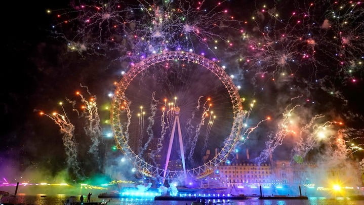 英國的新年倒數,由大笨鐘敲響倒數鐘聲揭幕,著名景點「倫敦眼」摩天輪隨即發放歷時12分鐘的煙花匯演,泰晤士河圍觀的民眾歡呼聲不斷。市長簡世德指,10萬張門票一早售罄,團隊為今晚的煙花匯演籌備5個月,在現場音樂及燈光表演的襯托下,相信會超越南半球悉尼和奧克蘭的倒數煙花。