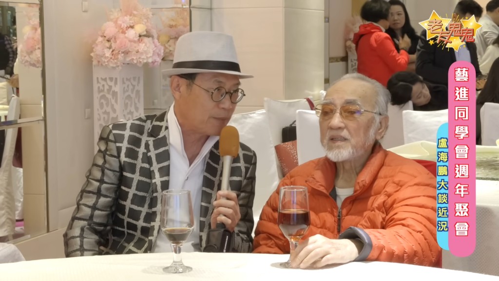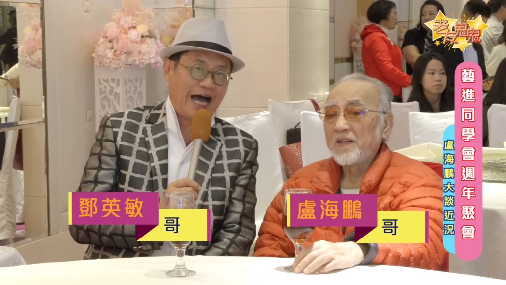 鄧英敏近年轉行做YouTuber,在聚會上訪問盧海鵬近況。(圖:老友鬼鬼@YouTube)