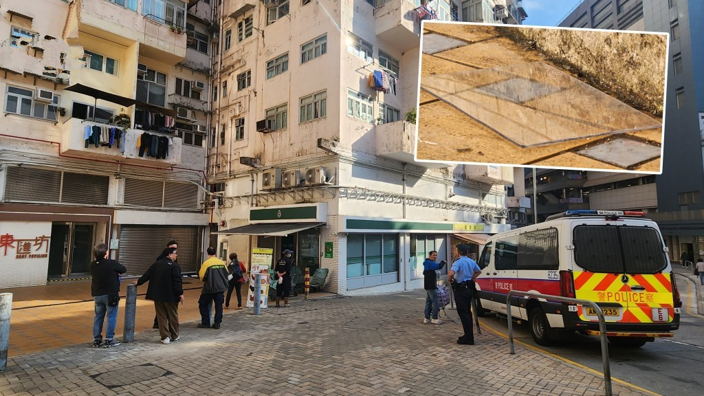 筲箕灣唐樓落「石屎雨」 擊碎路邊的士車尾玻璃