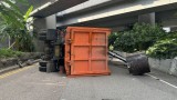 交通意外|葵涌吊雞車疑未收妥吊臂撞橋躉翻側 司機一度被困