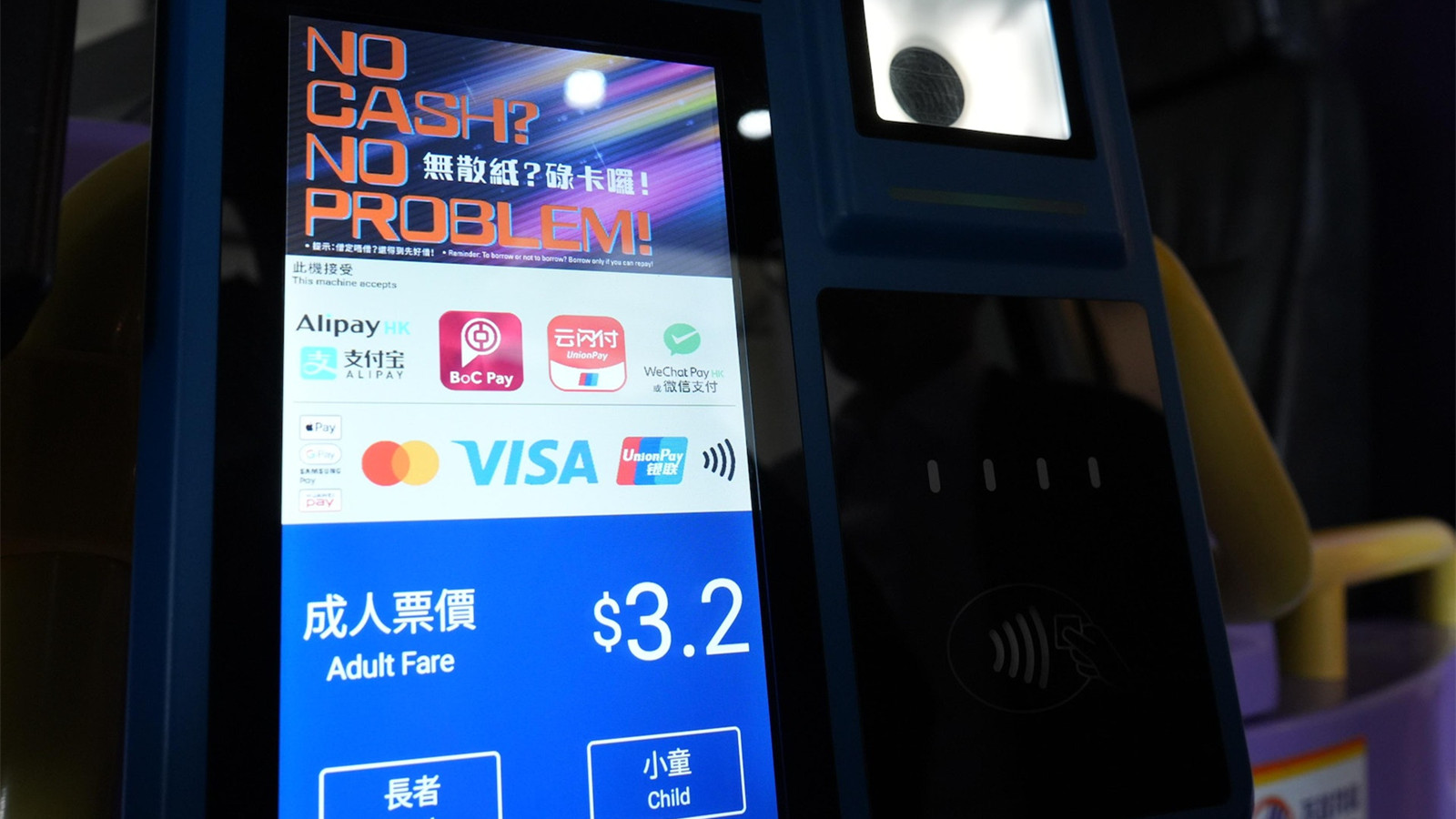 電子支付收費器會預設為成人票價,12歲以下小童及65歲或以上合資格長者可享有乘車優惠,若以WeChat Pay HK或微信支付付款,只需在收費器的輕觸式屏幕按鍵,再將二維碼放到收費器掃瞄。