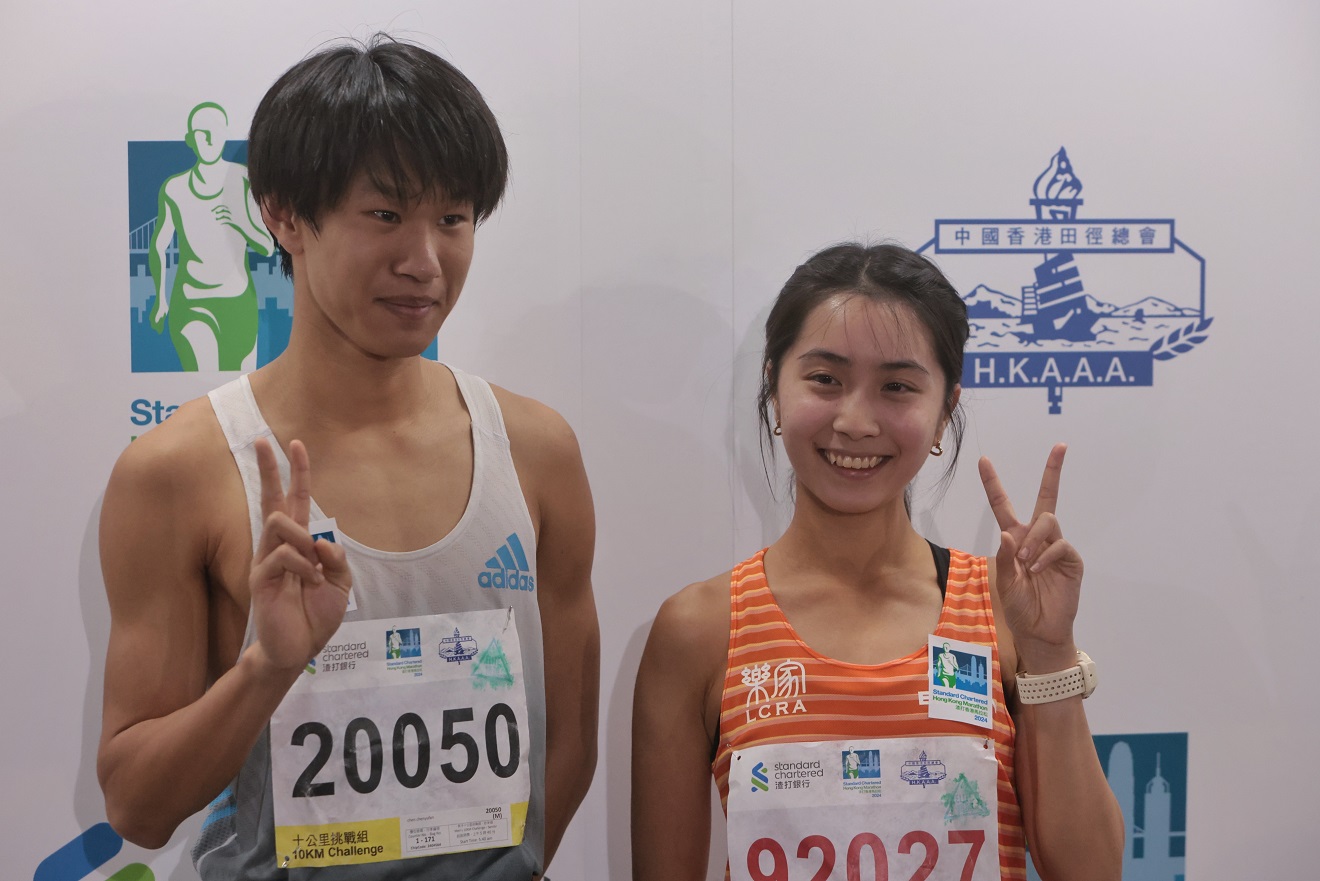10公里挑戰組經過約半小時後,陸續有跑手衝線,其中來自北京的19歲跑手陳雨繁以30分58秒贏得男子組冠軍,他指今日狀態不錯,跑出自己個人第2佳成績。陳雨繁表示,明年會繼續來港參賽。