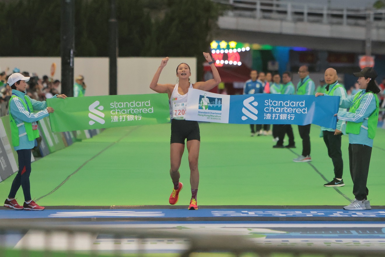 本地「跑后」由姚潔貞以2小時41分09秒奪得。她指今日完成全馬算是產後的一次越級挑戰,以前只敢參加短距離賽,今日比賽期間側腹疼痛,全程都在加速和減速間調整,對首名衝線感到開心。