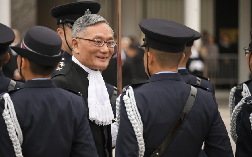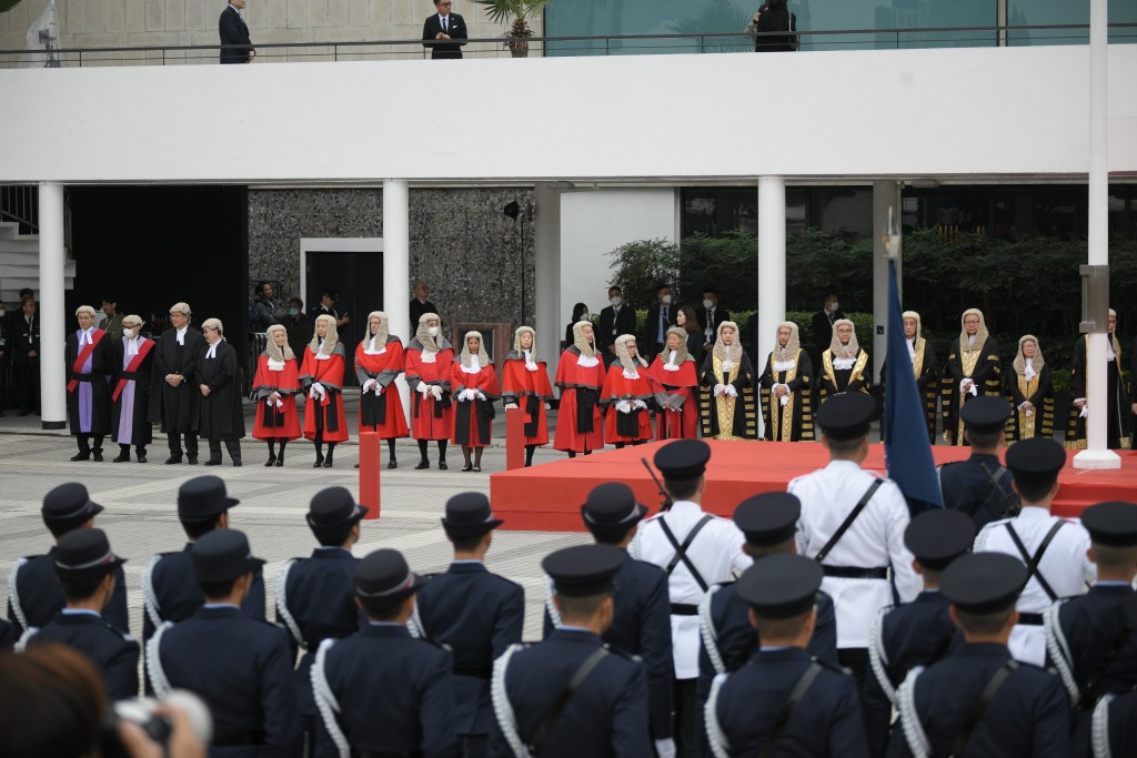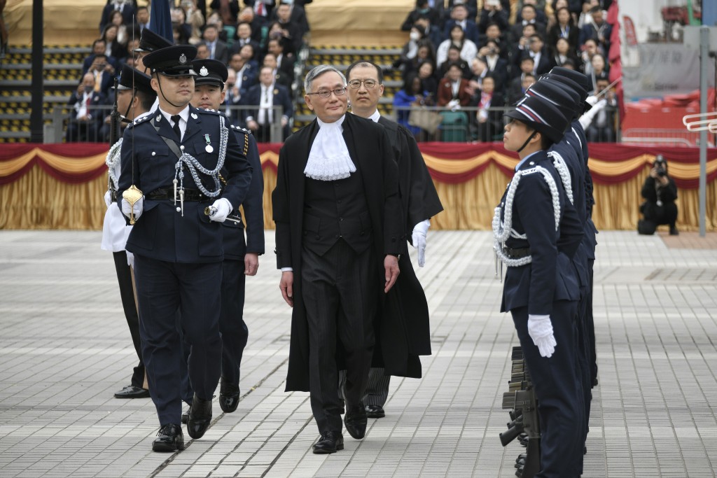 【橙訊】2024年法律年度開啟典禮今午在香港大會堂舉行,終審法院首席法官張舉能在愛丁堡廣場檢閱香港警察儀仗隊。