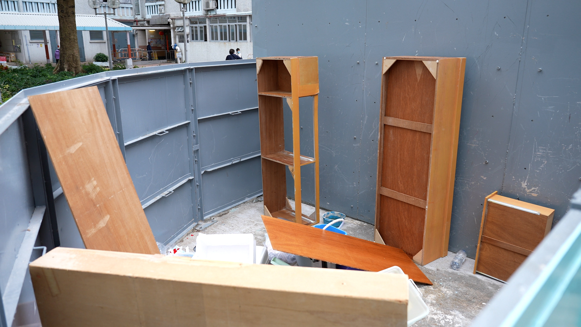 彩雲一邨有垃圾站為防有人胡亂棄置垃圾,以圍板圍封起來。
