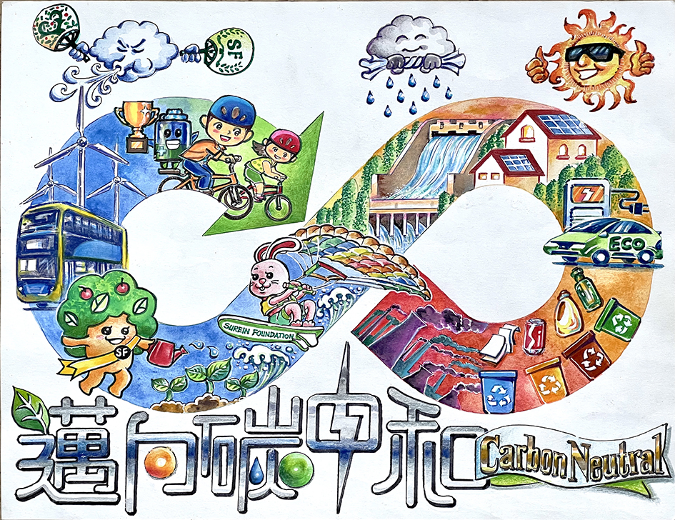 是次展覽展出不同組別的冠、亞及季軍作品。公開組冠軍得主廖益民以代表「無限」的數字符號,寓意通過碳中和可持續發展美好的將來,充滿意義。