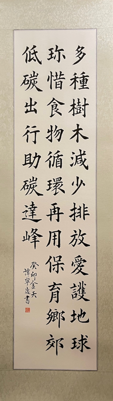 在書法方面,得獎者通過優美的楷體書法和簡易的低碳生活語句,鼓勵青少年學子緊記環保的要訣,活出綠色世界。至於高中組、高小至初中組,以及初小組的冠軍分別是譚寧逸、高陽、蔡柏喬。