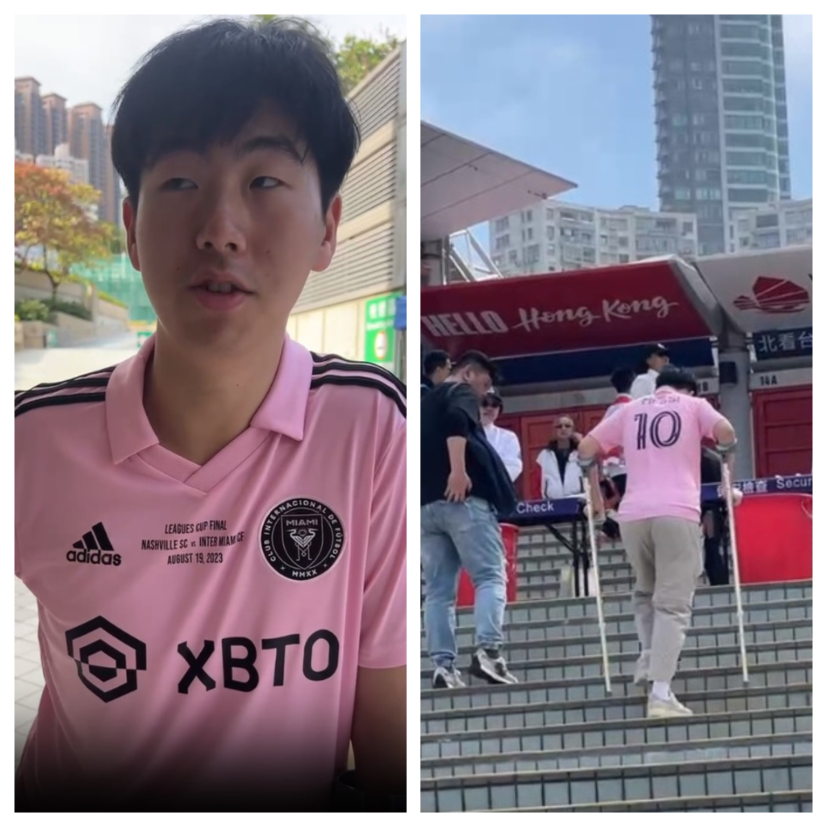 【橙訊】阿根廷球星美斯所屬的美職聯球隊國際邁阿密,傍晚5時半會在香港大球場進行公開操練。下午大約2時,已經有買了門票的人士在大球場外排隊等候入場。有球迷雖然腳部受傷,但撐住兩支拐杖都要到來一睹美斯風采。