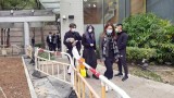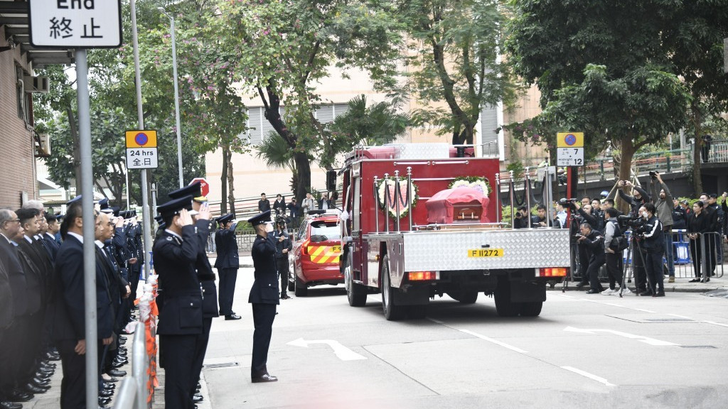 同袍在殯儀館外列隊致敬。
