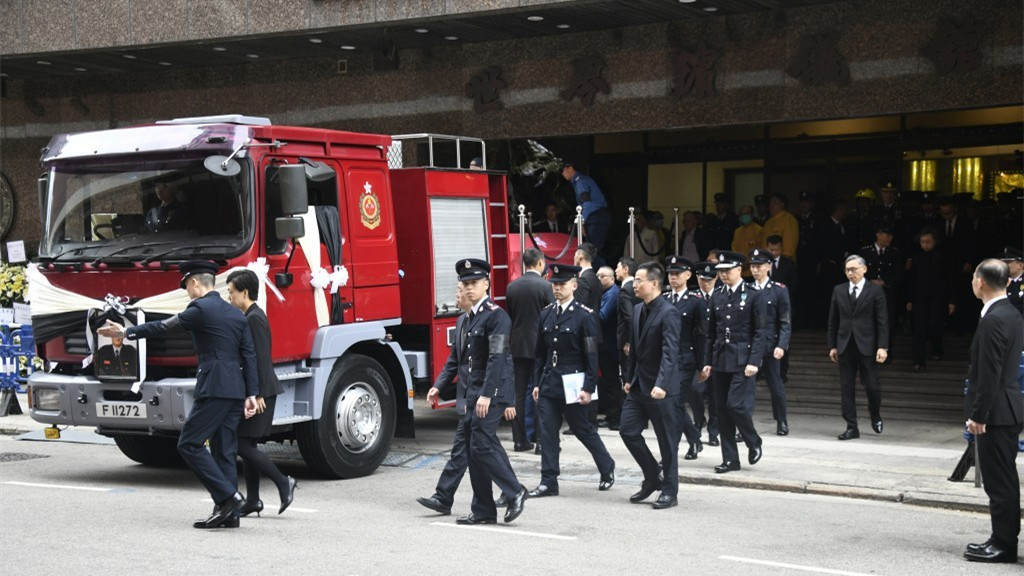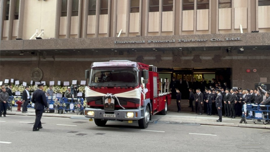 【橙訊】消防員邱耀文1月19日在大嶼山神奇道處理交通意外期間暈倒,送院搶救不治,終年49歲,消防處為邱耀文舉行榮譽喪禮。昨晚紅磡世界殯儀館邱耀文設靈,保安局局長鄧炳強及消防處處長楊恩健到場吊唁,今日早上進行官方出殯儀式。喪禮以道教儀式舉行,靈堂中央有邱耀文遺照及「浩氣長存」四個大字。