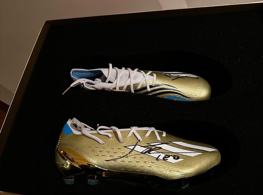 羅蘭昨日與阿根廷球王美斯(Leo Messi)見面,兩人不但有合照,還得到美斯的親筆簽名球鞋(圖:roland_0fficial)