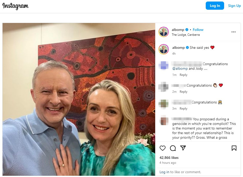 兩人訂婚的消息傳出後,外長黃英賢(Penny Wong)在帖文下回應說:「愛是種美好的東西。我真的為你們感到高興。」內政部長奧尼爾(Clare O'Neil)表示祝賀。而鄰國新西蘭總理盧克森(Christopher Luxon)也表達了祝福。