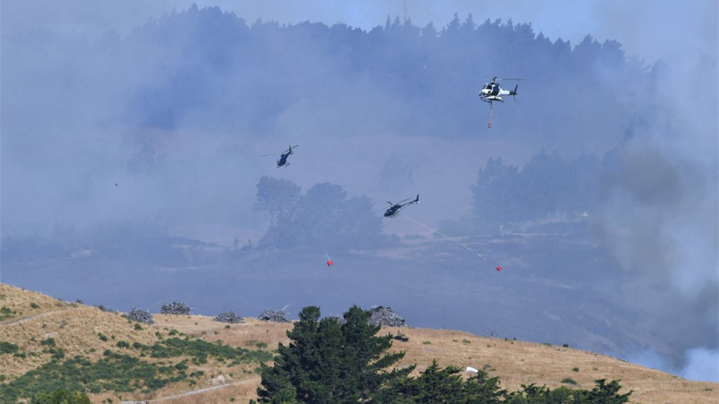 新西蘭南島發生山火,當局派出直升機協助撲滅火勢。