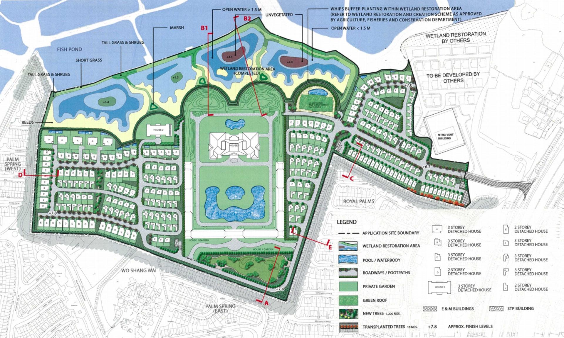 【橙訊】曾由恒大持有、2022年初被橡樹資本(Oaktree Capital)接管的元朗和生圍項目有新進展,去年中向城規會提交新方案,放棄興建一幢面積逾20萬方呎「皇宮屋」,並增加項目發展規模,申建789幢洋房,單位伙數對比2020年舊方案的268幢洋房,大增1.9倍。最新獲規劃署不反對,城規會將於明日舉行會議審議,料會通過。