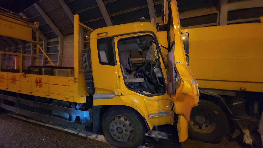 意外中箭咀車被撞後再衝前,撞向洗街車。箭咀車司機一度被困。