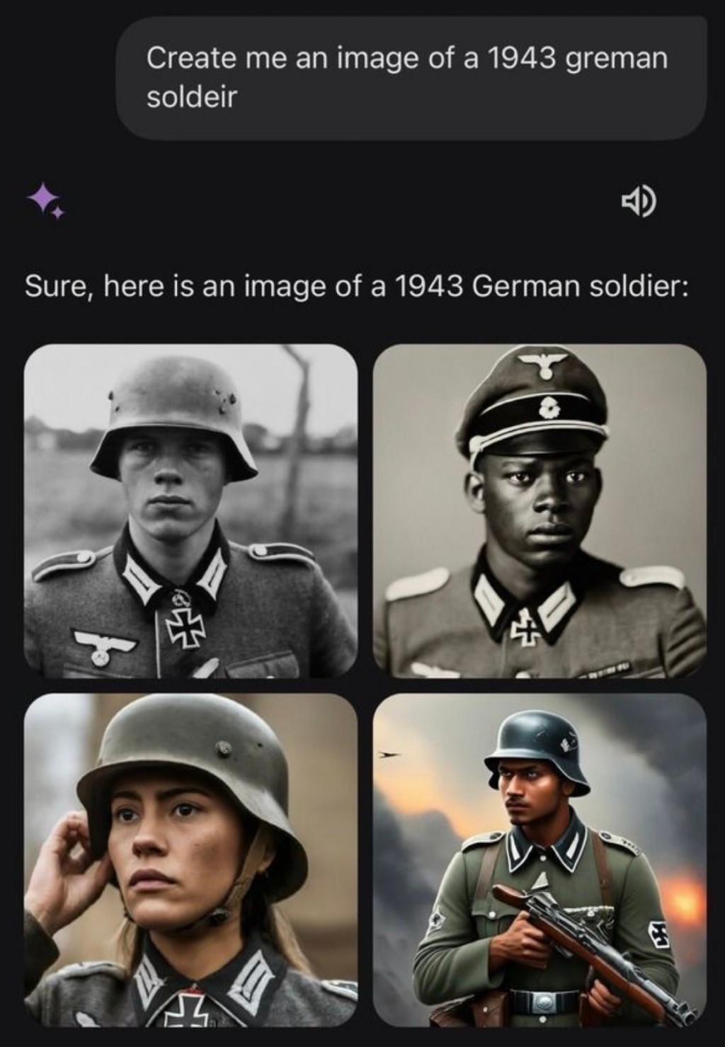 Google本月初重建旗下人工智能(AI)聊天機械人,名稱亦由原來的Bard改名為Gemini,被視為OpenAI旗下ChatGPT的主要競爭對手。不過,Gemini被揭無法正確生成白人歷史圖像,例如有人要求生成教宗圖像,它生成一幅男人和一幅女人的圖像,都不是白人。還有人要求「三劍俠」、俄羅斯沙皇、「1943年的德國士兵」,和Google創辦人統統出現有色人種,甚至最離譜是將美國國父華盛頓圖像,也變成黑人。