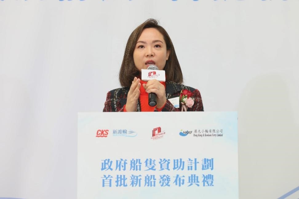 香港立法會議員陳家佩議 為下午新船發佈典禮致辭。