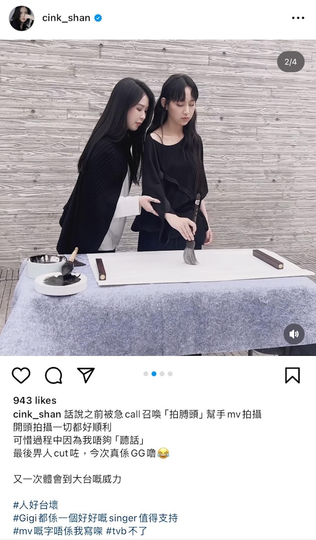 不過有份參與MV的美女書法家青山不墨,就在社交平台一吐不快,透露自己的鏡頭全被剪走(圖:cink_shan@IG)