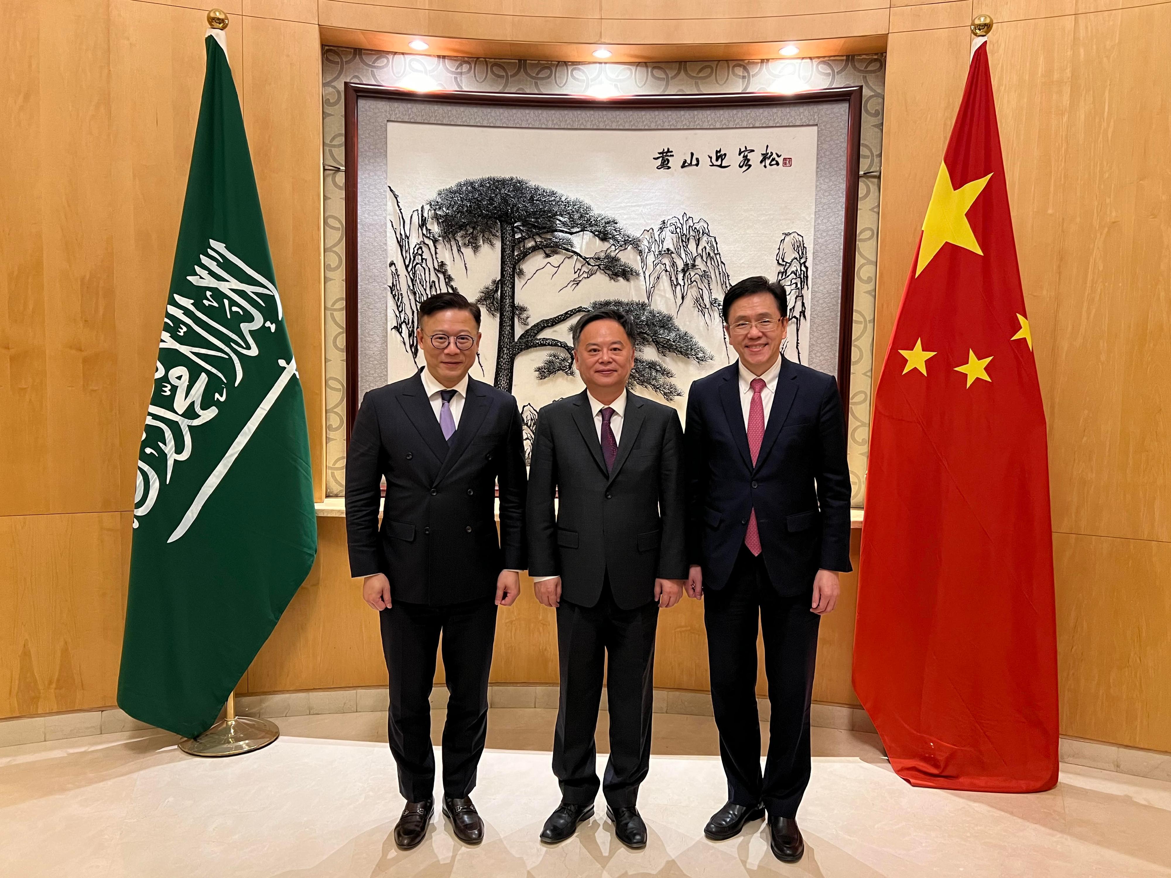另外,孫東與同時正在當地訪問的律政司副司長張國鈞拜會中國駐沙特阿拉伯王國特命全權大使陳偉慶。孫東期望特區政府與大使館繼續緊密合作,推廣香港致力建設成為國際創科中心的優勢,以開闢新興市場。