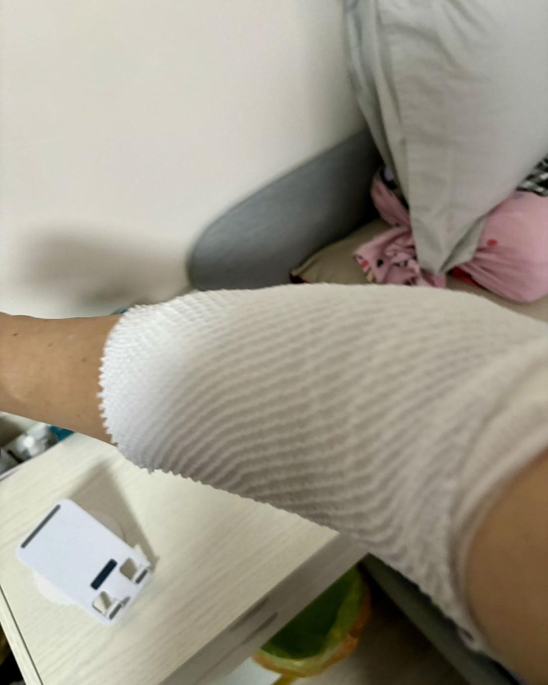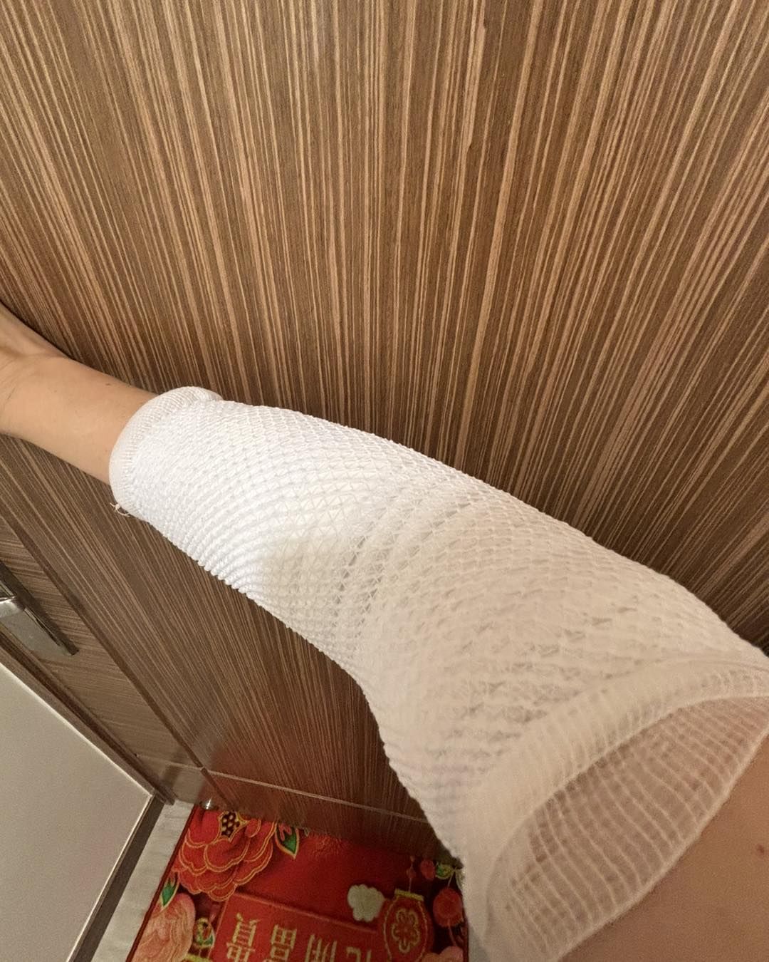 她上周五再次於IG上載一張由手肘至手腕以紗布包紮的相片,直言:「我真的唔知仲可以捱幾耐……」(圖:ngai_annie@IG)