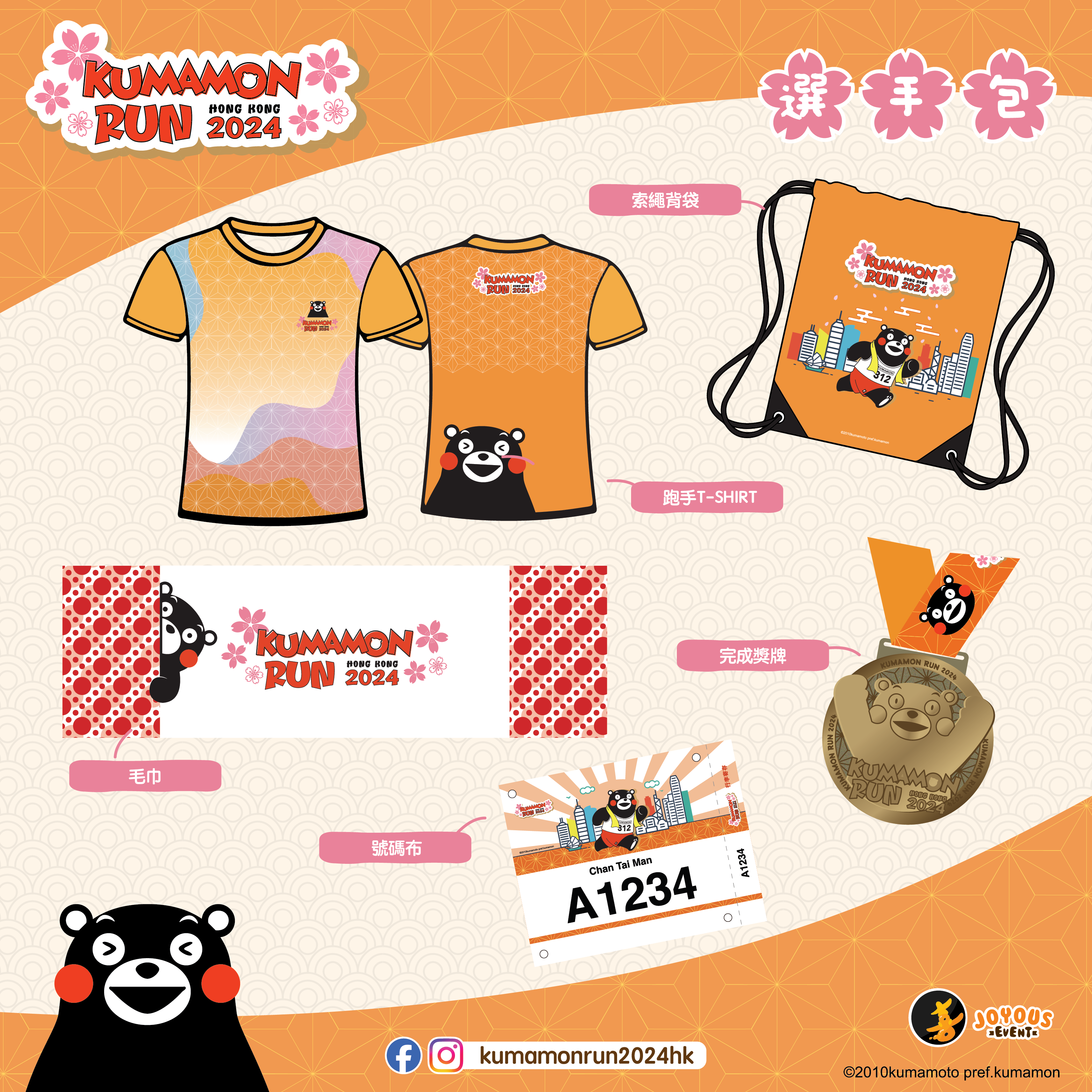 參加活動將會獲得一套以Kumamon為主題設計的選手包。(圖:kumamonrun2024hk)