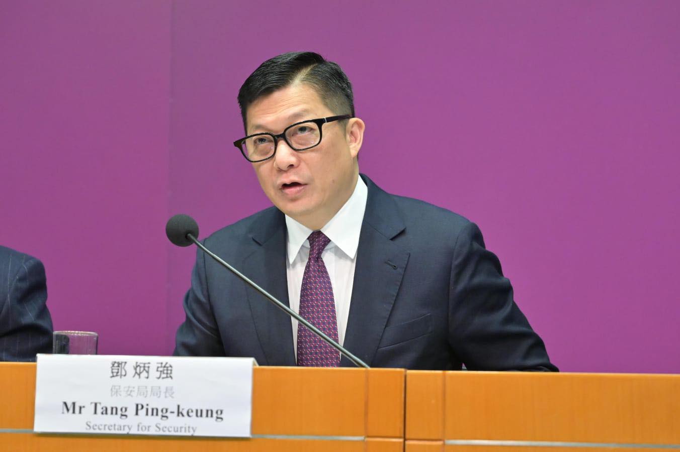 鄧炳強指,香港會繼續堅決履行維護國家安全的責任。