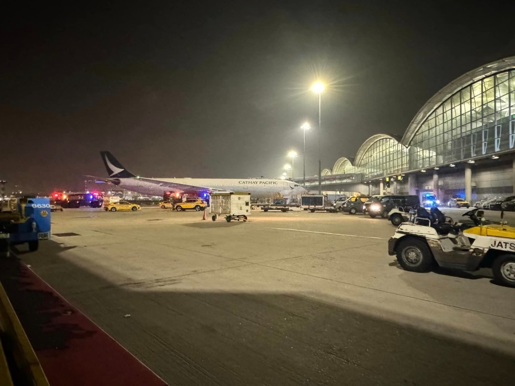 【橙訊】赤鱲角機場發生火警。今日凌晨4時許,赤鱲角機場一個升降台突然冒煙,停泊在旁邊的國泰航機險遭波及,有職員發現後立即報警。