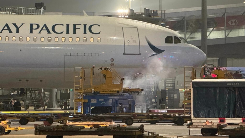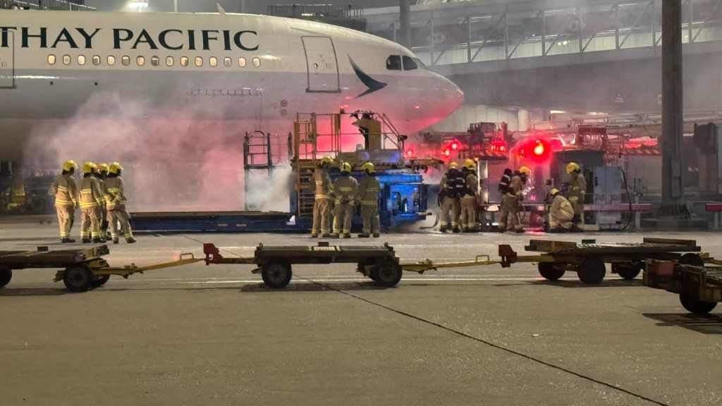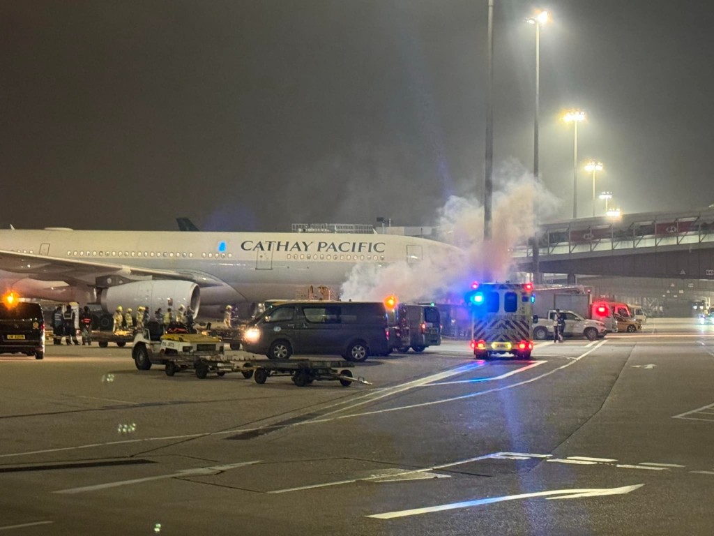 赤鱲角機場一個升降台突然冒煙,停泊在旁邊的國泰航機險遭波及。