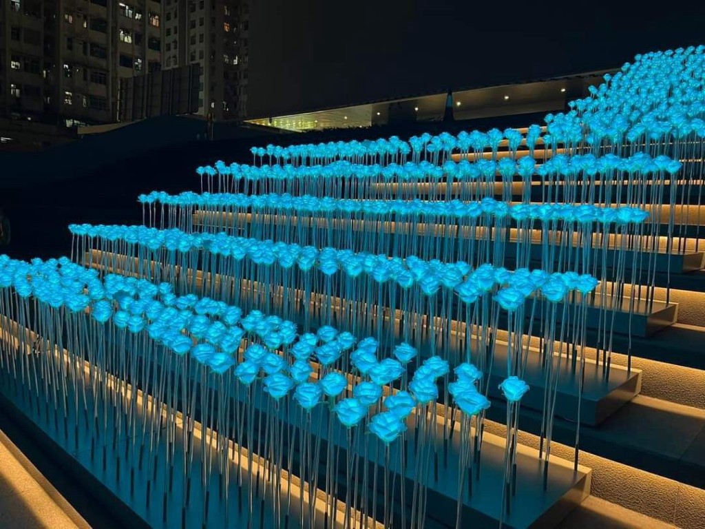 東九龍文化中心外設置的LED玫瑰花海,在日間未有亮光。