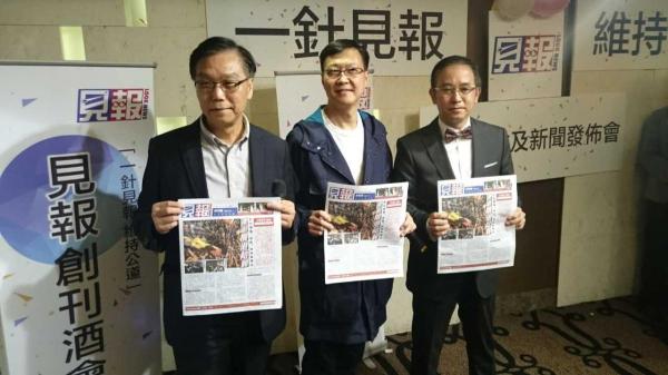 左起:《見報》行政總裁黃成智、營運總監關德慶和社長黃家賢出席創刊酒會。圖片:橙新聞