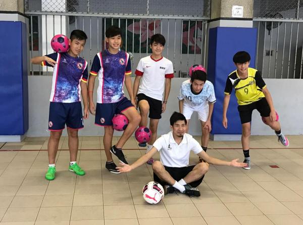 鄧鏡波書院5名學生正在學習花式足球的秘技。