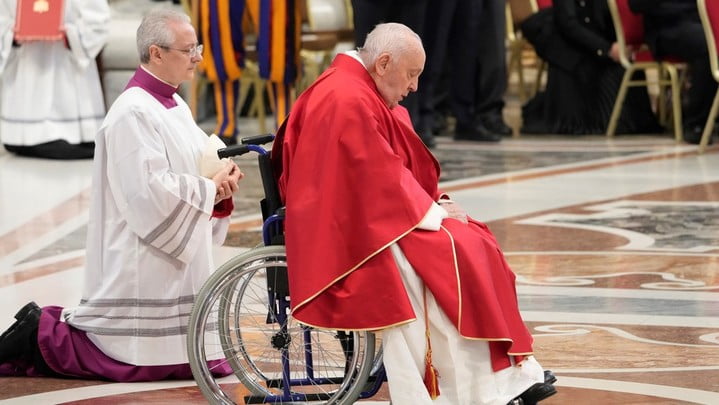 87歲的方濟各,近年接連出現健康問題,今次是他連續第二年未有出席苦路儀式。他在星期五下午,有親身出席在梵諦岡聖伯多祿大教堂的耶穌受難日儀式,期間須乘坐輪椅代步,亦未有按慣例下跪禱告。