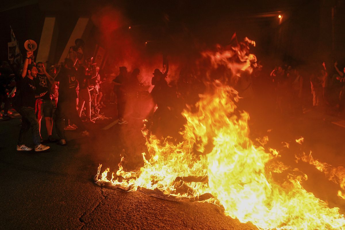 當地傳媒引述抗議組織指,約10萬民眾周日晚聚集在西耶路撒冷的以色列國會大樓外,要求內塔尼亞胡下台、舉行議會選舉,並要求政府盡快與哈馬斯達成協議,釋放被扣押以色列人。規模是以色列爆發與巴勒斯坦武裝組織哈馬斯開戰以來最大。示威人群在國會或國會大樓周圍延伸了幾個街區,示威發起人矢言要繼續示威數天。
