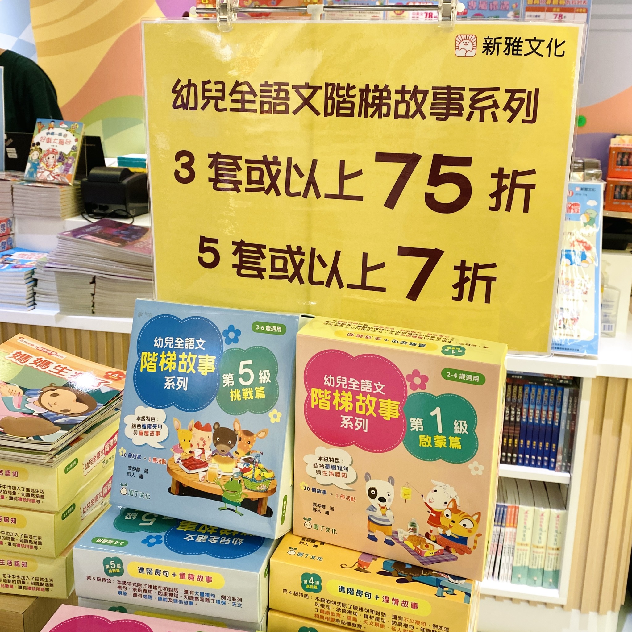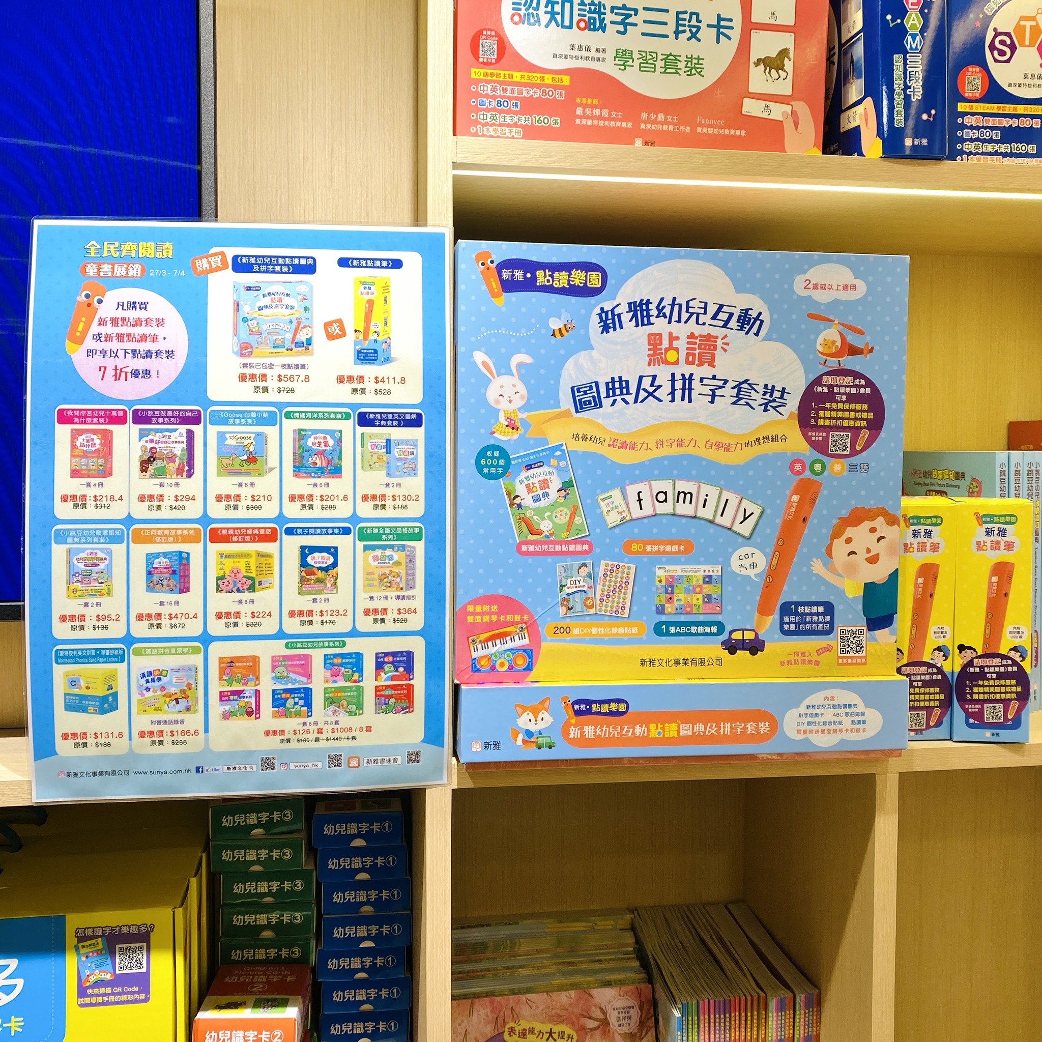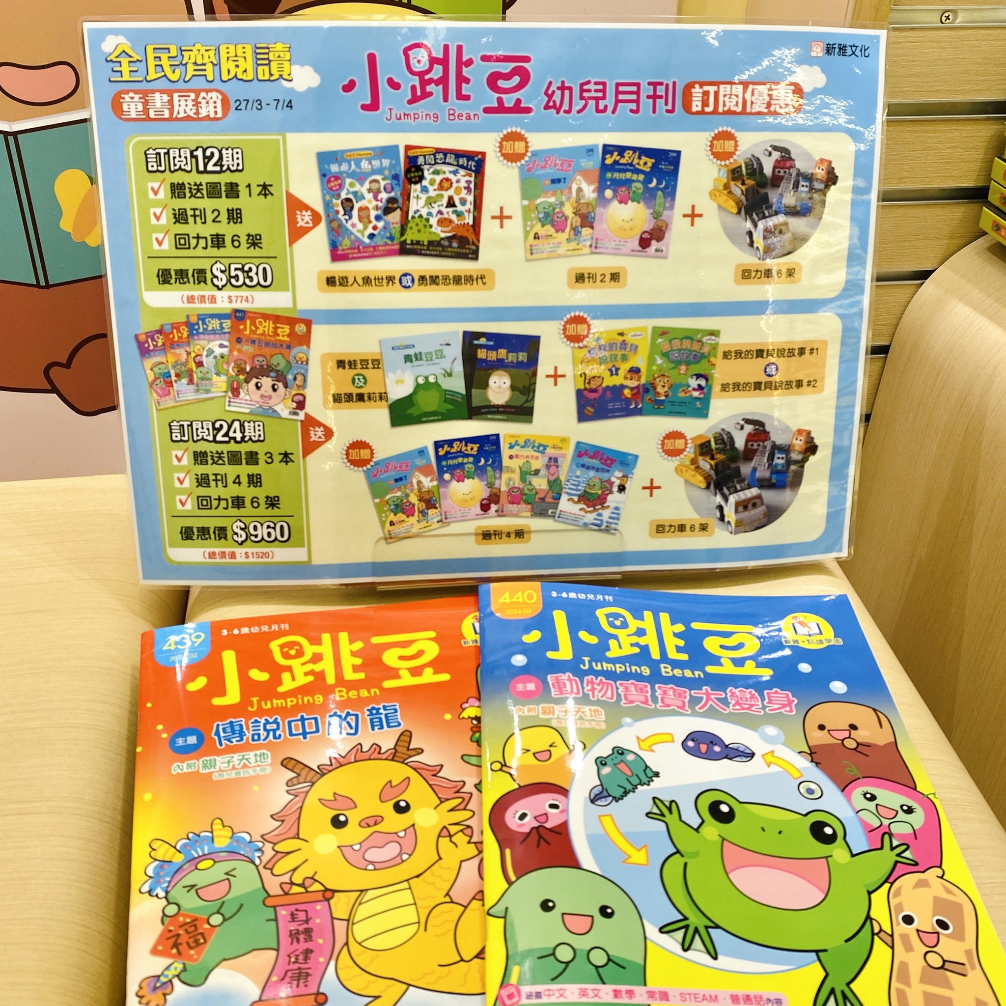 更多優惠包括:購買《新雅點讀筆》7折加購點讀套裝;精選迪士尼故事書低至5折;小康軒教具6折;《哆啦A夢科學任意門》系列65折;熱銷系列《小跳豆幼兒故事系列》$130/6本;《幼兒全語文階梯故事系列》及《好奇水先生》系列低至7折;訂閱《小跳豆幼兒月刊》優惠;加購圖書低至38折等。