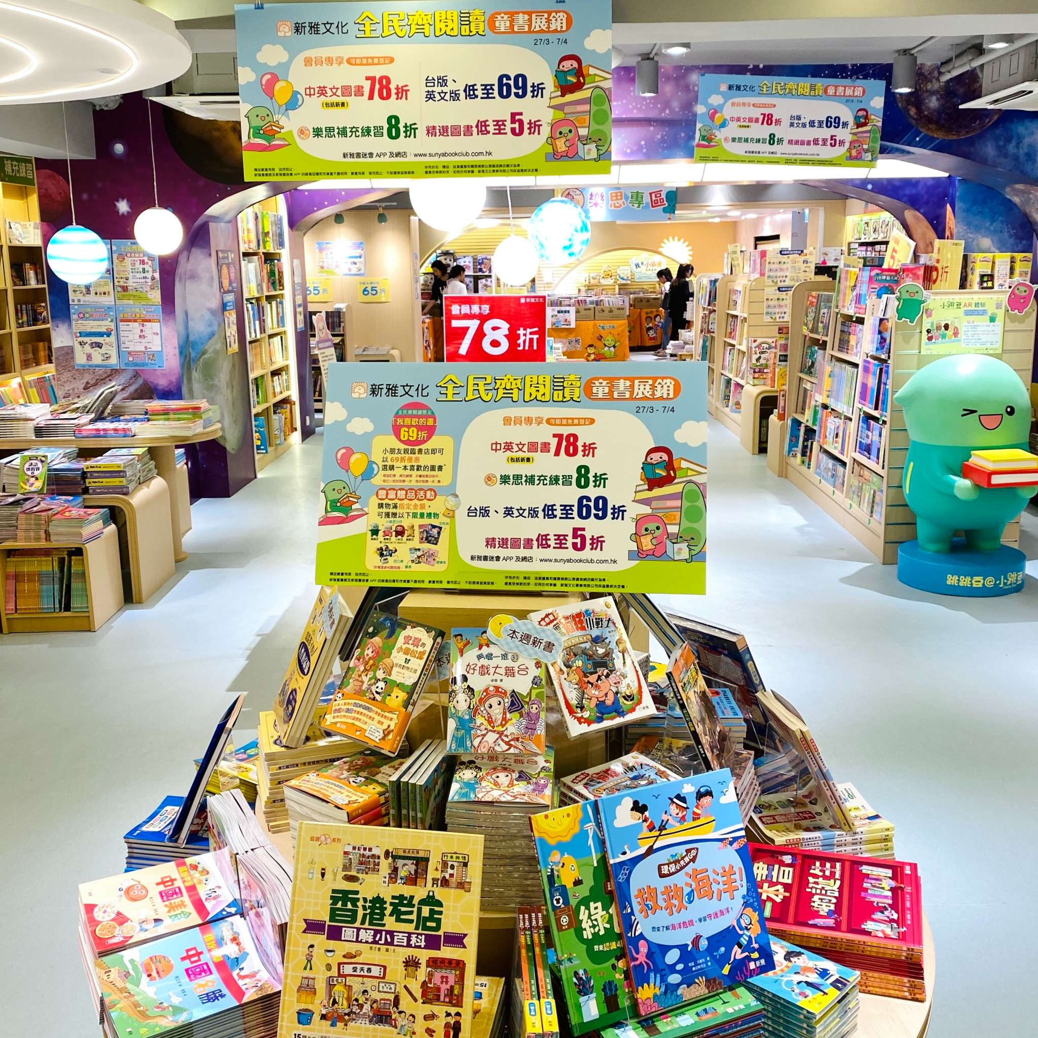 【橙訊】今年起,香港政府將每年的4月23日訂為「香港全民閱讀日」,向大眾推廣閱讀的好處。本港童書出版社新雅文化即日起至4月7日,於新雅童書館「新雅文化全民齊閱讀.童書展銷」活動,提供數千款好書,包括新書、暢銷書,並準備不少精美好禮回饋讀者。現場立即加入成為新雅書迷會會員,更可專享各種購書優惠:所有圖書單本78折,樂思補充練習8折,精選補充更低至半價,英文書及台版書低至69折。此外,精選圖書更低至5折、精選套裝7折、教育玩具85折等。