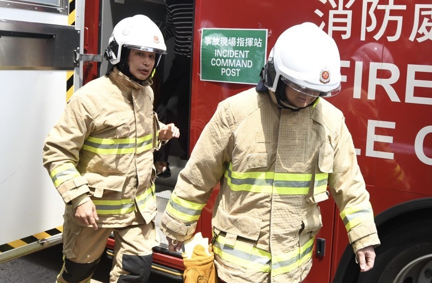 鄧炳強到達現場後,隨即登上消防處流動指揮車,更穿上消防制服、戴上頭盔進入華豐大廈。