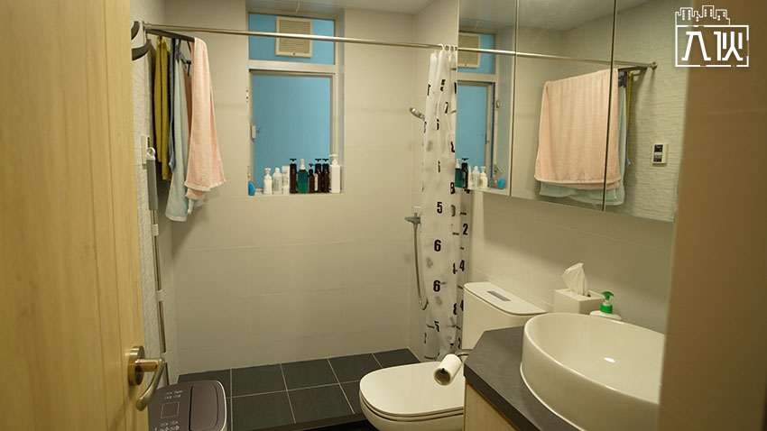 廁所在大門右邊,重鋪牆身和地磚,沖凉位則由浴缸改為淋浴。圖:入伙